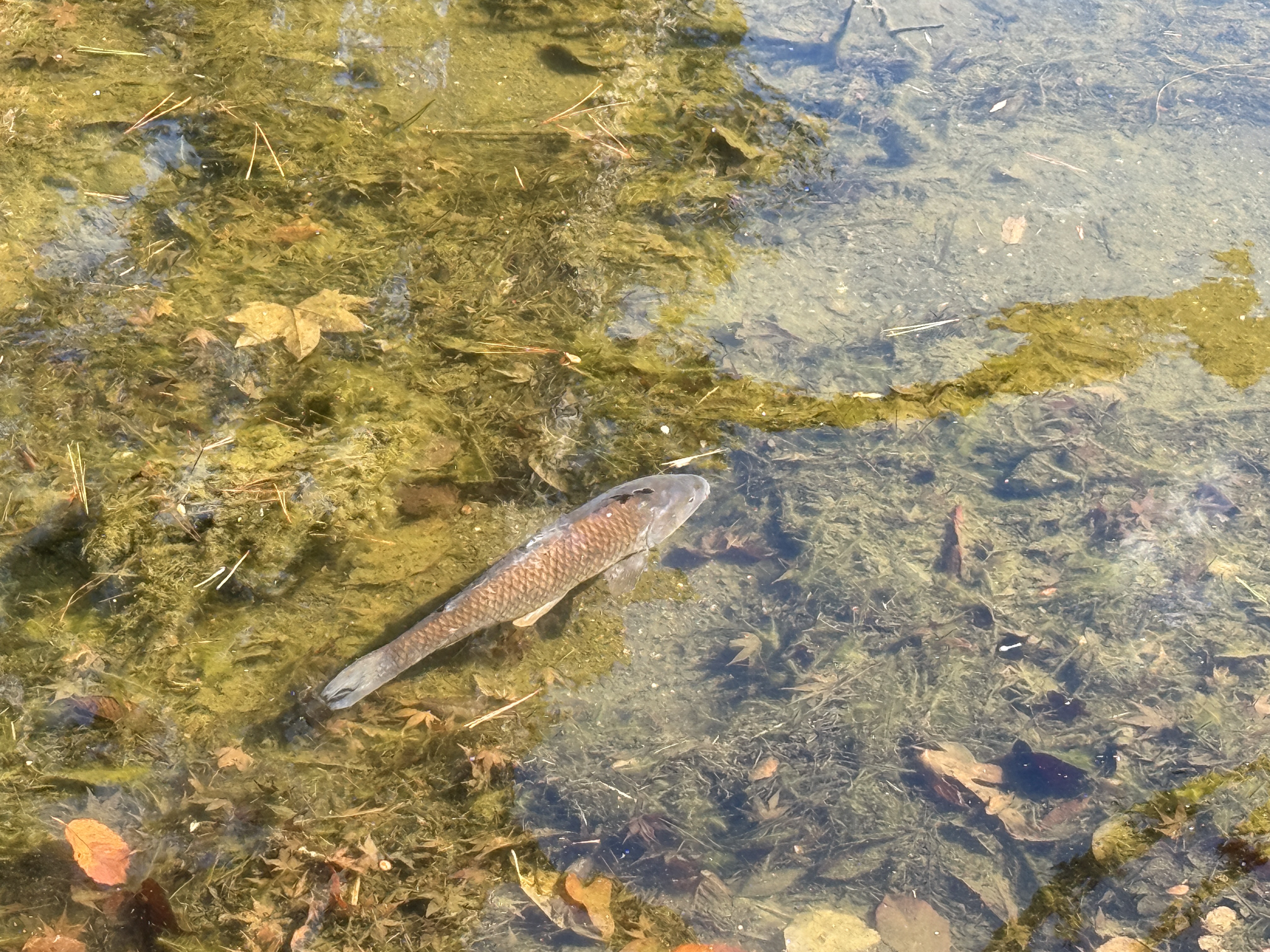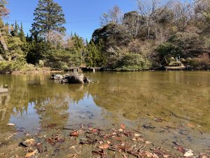 まだ亀は冬眠中のようで姿が見られませんでしたが、鯉が気持ちよさそう泳いでいる姿は見られました。この場所では餌やりもできるのでお子様に人気の場所です。(亀が冬眠から覚めると鯉と亀の餌の争奪戦がみられます)