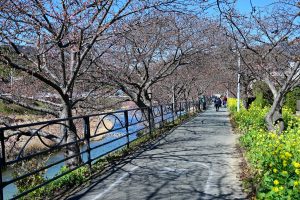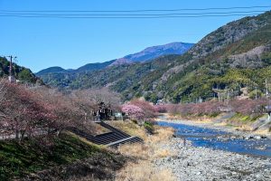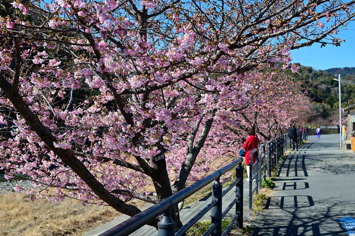 川沿い約4㎞が、約850本の河津桜でピンク色に染まる景色は圧巻です。
