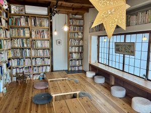 店主のお母様が残した大切な絵本、1万冊程のさまざまなジャンルのものが綺麗に並んでいて、その中には子供のころに読んでいた絵本もあり、わくわくして夢中で読んでしまいました。