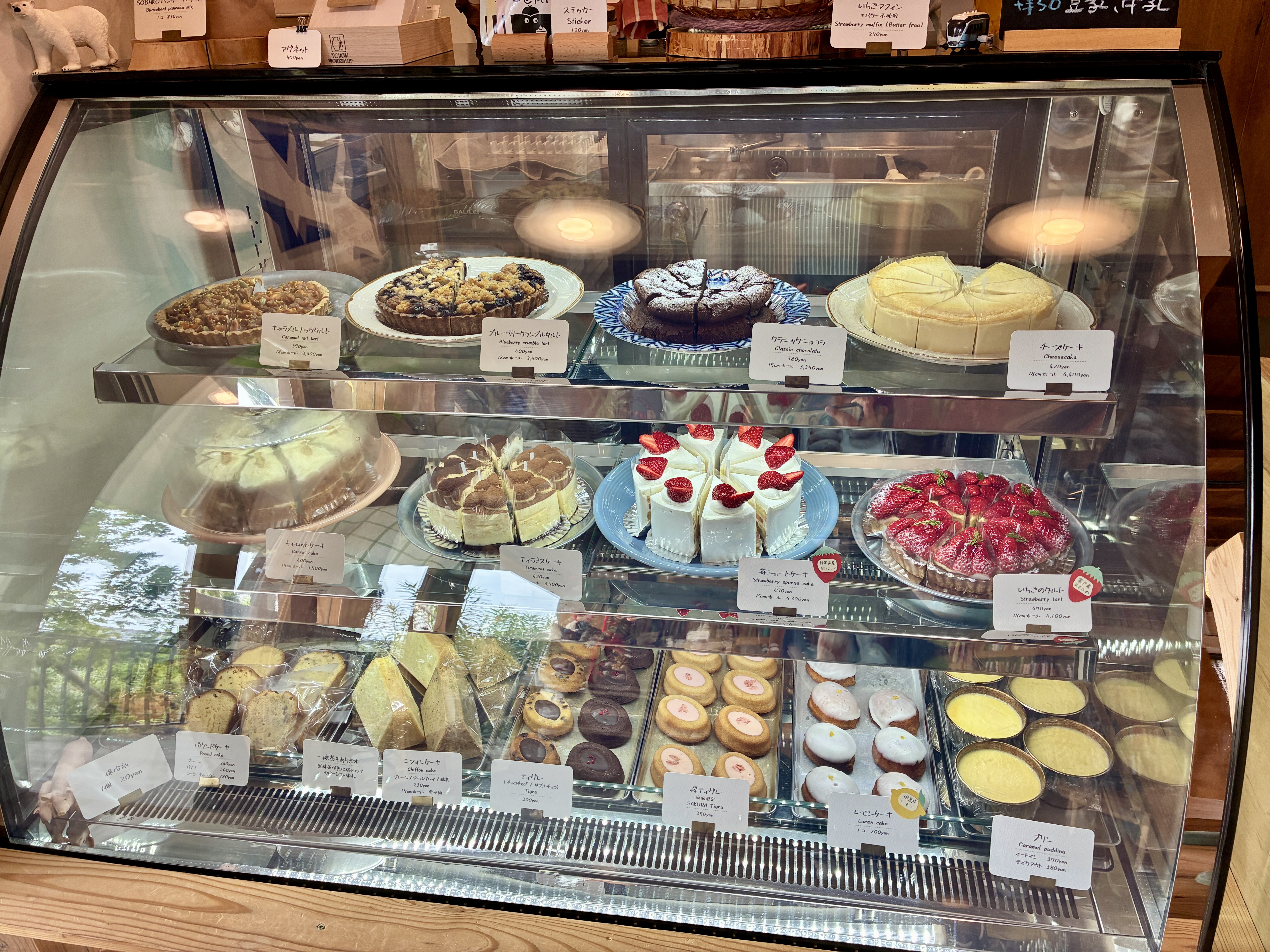 ショーケースにはキャロットケーキ、プリン、ティグレ、王道のチーズケーキや季節の果物を使用したケーキが並んでいて、開店後すぐに伺いましたが品揃え豊富でした!