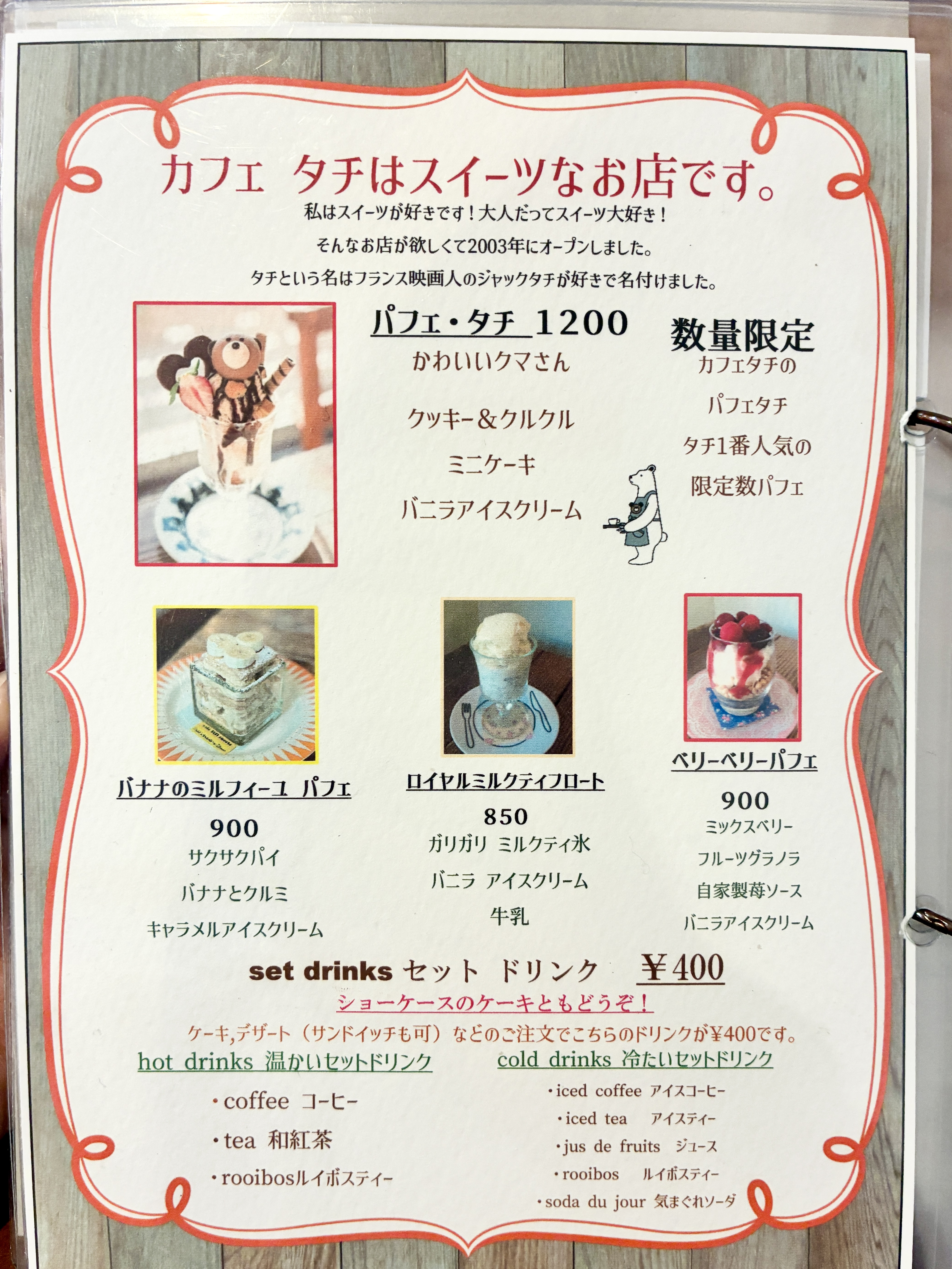 今回はカフェタチサンドとケーキと紅茶を注文!