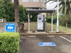 今回ご紹介させていただくのは、伊豆半島の付け根の中央部分にあります道の駅。その名も「道の駅 伊豆のへそ」でございます。駐車台数はおよそ60台程になます。EV充電対応は1台となります。