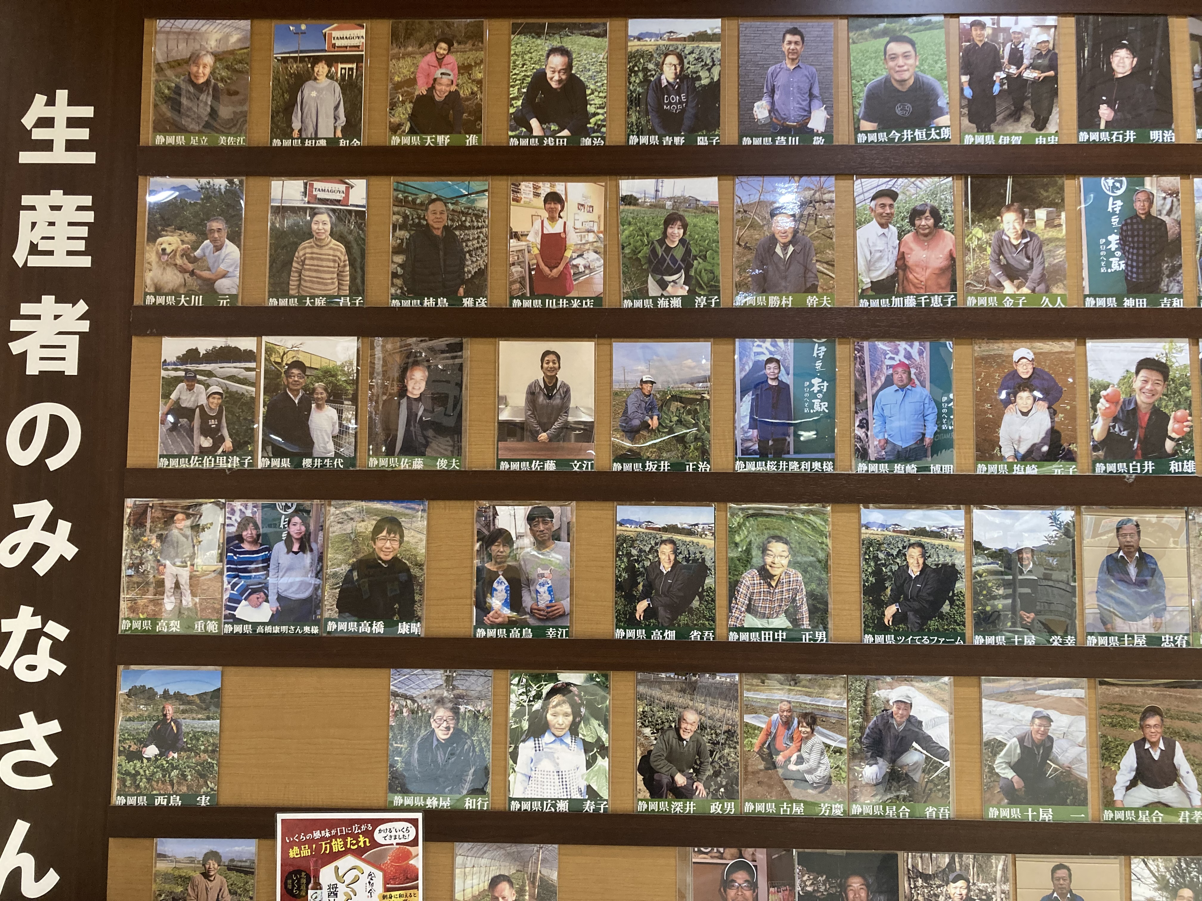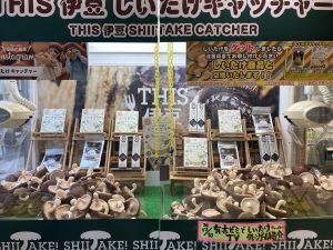 農産物販売所レジ前には生産者の方々の写真(生産者の方が分かると安心して買えます)や、入口にはちょっと変わったクレーンゲーム(しいたけキャッチャー)があります。