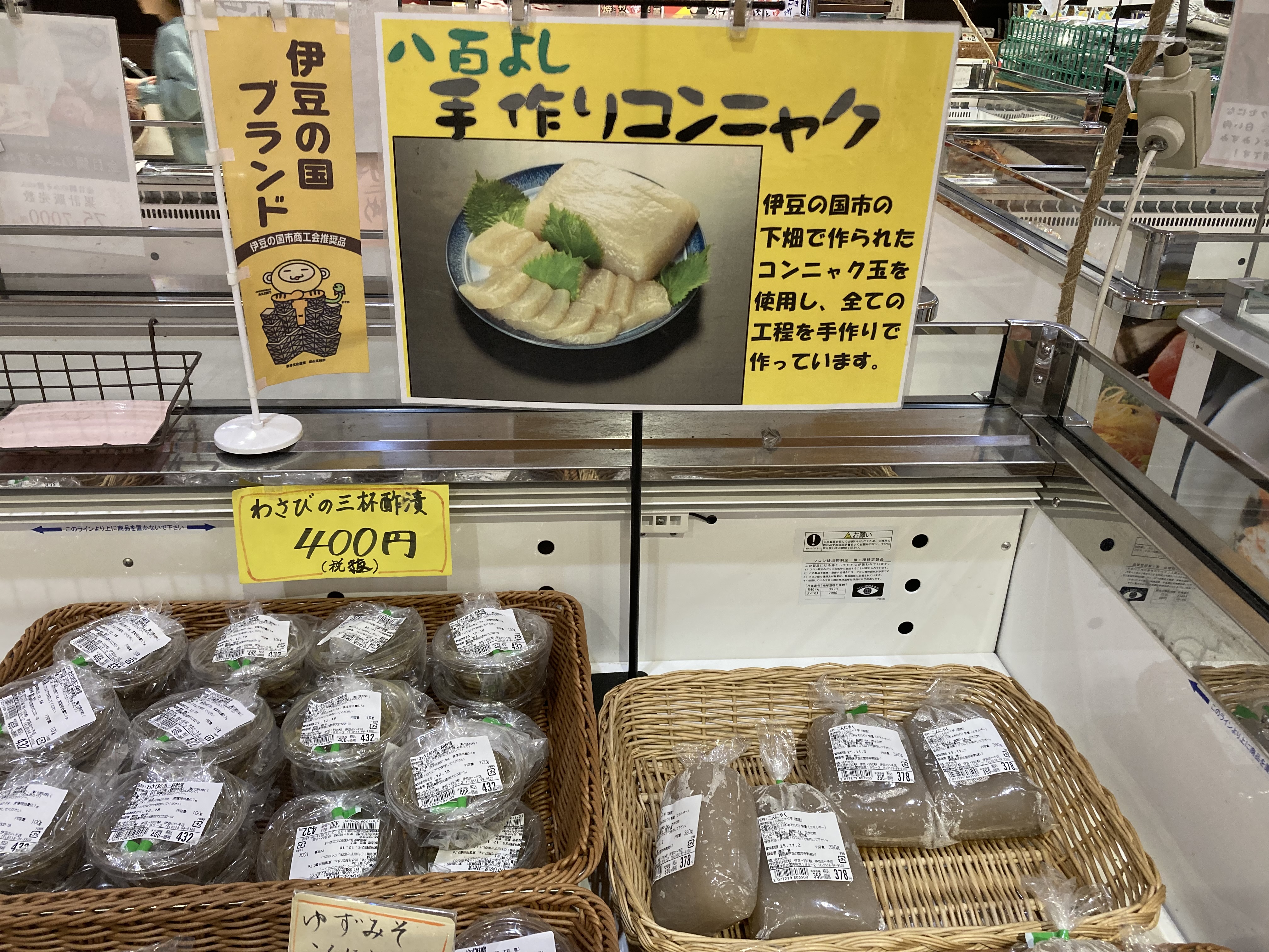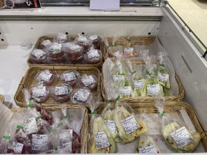 店内奥の冷蔵スペースなどには生産者の手作り漬物やコンニャクなどの販売がございます。私が着いたのがお昼過ぎだったので、ほとんど無かったのですが炊き込みご飯や押し寿司・揚げ物などの販売もしています。