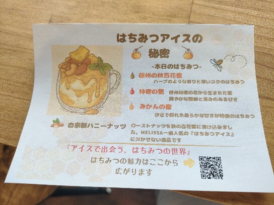 なんとアイスの上のハチミツは日替わりで、来てからのお楽しみ!